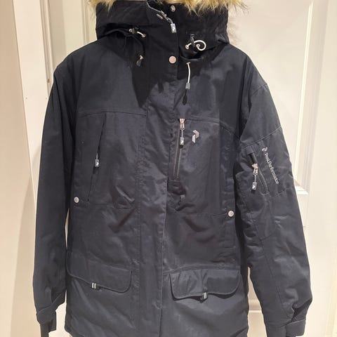 Peak Performance W vinterjakke i størrelse L, farge svart. Jakken er designet for kvinner og egnet for vinterbruk. Materialet og konstruksjonen gir beskyttelse mot kalde værforhold. Pent og lite brukt. Perfekt til bruk i alpinbakken. Flere lommer og lufting under armene. Egen lomme til heiskort.