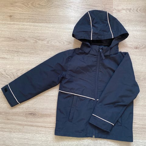 Fin og god softshelljakke. Den er mørkeblå med rosa kanter og for inni. Ingen anmerkninger som jeg kan se.