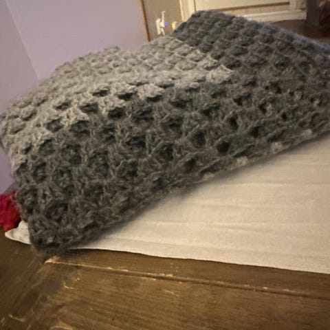 Selger dette bestemorpledd glade farger. Det er nylaget i ullgarner og ikke brukt.