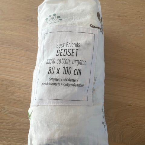 Mål: Putetrekk 40 x 35 cm. Dynetrekk 62,5 x 76 cm. Pent brukt av enebarn og ingen slitasje eller nupper.