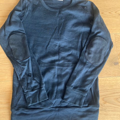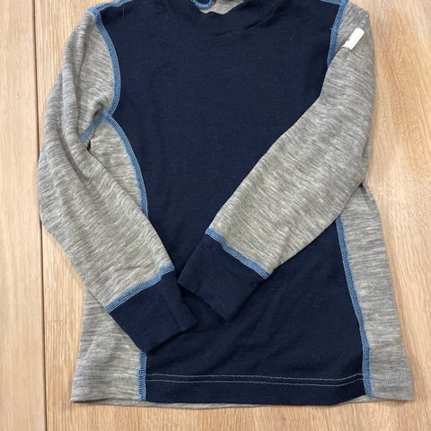 WoolLand ullgenser i str 122/128. Genseren er blå. Pent brukt av ett barn. Sømmen på lomma er sydd igjen etter at den gikk opp, som vist på bildet.