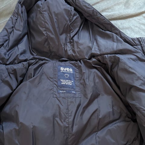 Svea Annet yttertøy i størrelse S for kvinner, farge blå. Jakken har hette med pelskant og flere lommer. Egnet som yttertøy for kalde dager.