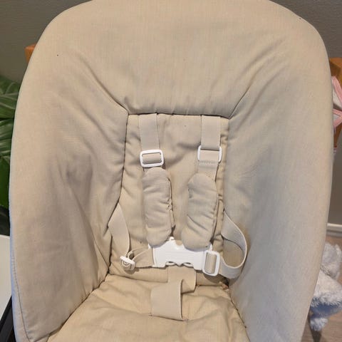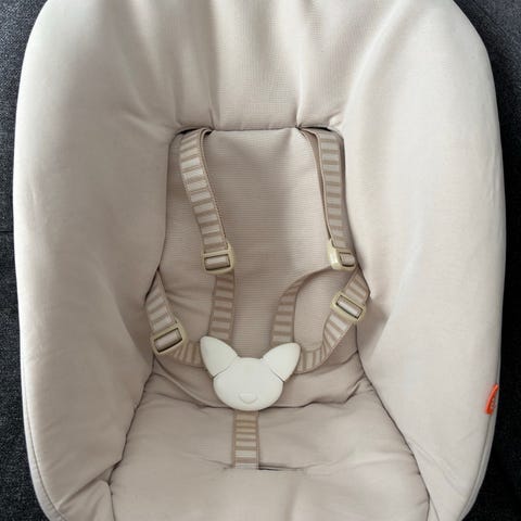 Kan brukes fra nyfødt, hyggelig å ha baby sittende i samme høyde som deg når du spiser.