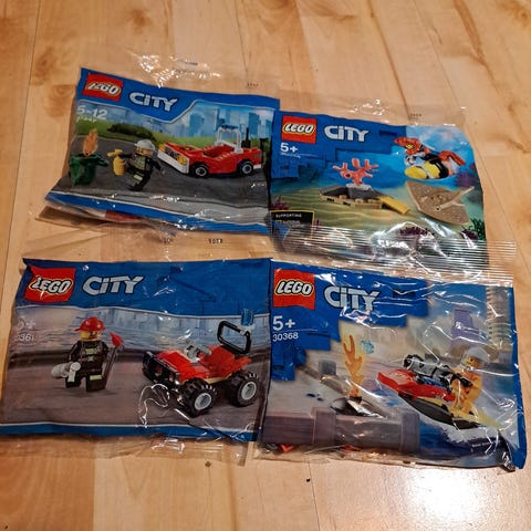 Selger to LEGO mini Polybags samlet - et Lego Star Wars Fighter Poe’s X-Wing 2016 uåpnet. Og et Lego City Fire Speedboat 2013 uåpnet.