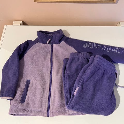 Skogstad ullsett i grå farge, størrelse 92. Settet består av en jakke med glidelås og matchende bukse. Materialet er mykt og varm merinoull. Perfekt til barnehage bruk. Noen brune flekker på buksen og jakken, se bildet. Hjemme strikkede raggsokker føler med.