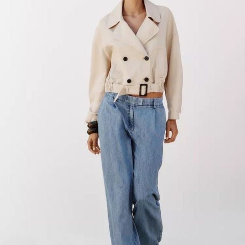 TRENCHCOAT i kort modell fra ZARA, fremstår som ny da den er lite brukt. Jakken er fra ZARA Basic. Den er ikke fôret, dobbel-spent og rett i formen.