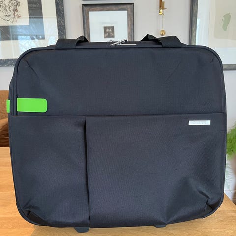 Vesken har to hovedrom med organiseringsløsninger og en polstret, fleecefôret lomme for en 15-tommers eller 16-tommers bærbar PC.