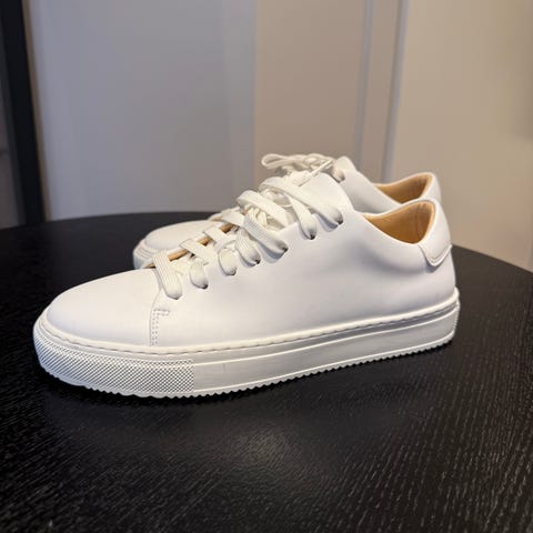 Moncler Neue York Sneakers white. Kun brukt en gang. Helt som nye. Eneste merke er i skinnet slik det blir med en gang. Se siste bilde.