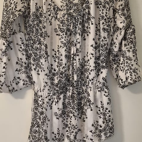 Hvit bluse med striper. Strekk rundt mansjett (se bilde) Kjøpt på HM.