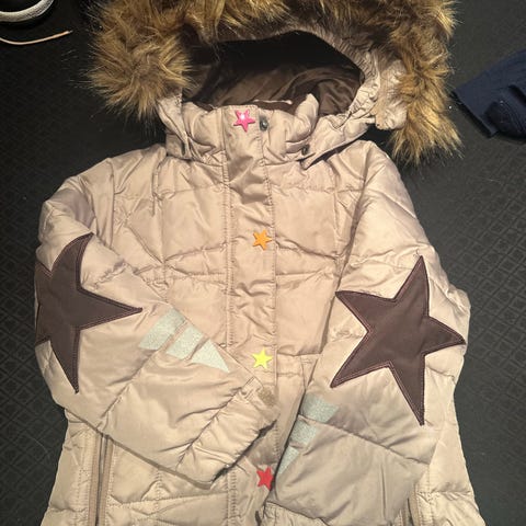 Skogstad barnejakke i størrelse 92, designet for jenter. Jakken er blå med rosa detaljer på innsiden og utsiden og har hette. Materialet er egnet for utendørs bruk og gir beskyttelse mot vær. Jakken er veldig pent brukt.