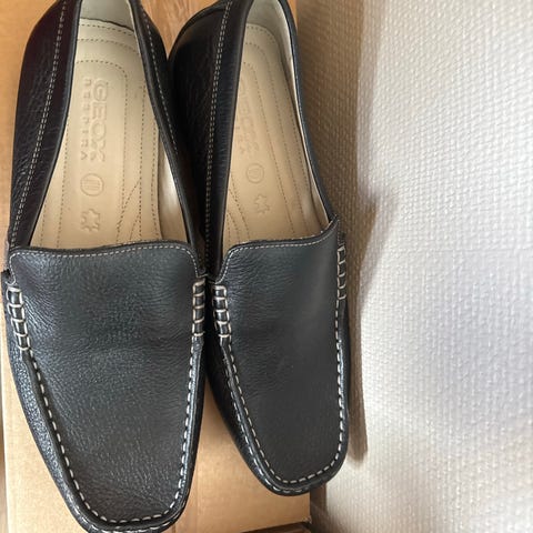 Sorte sko fra Gabor i semsket skinn, i str 8½ tilsvarer 42,5. Comfort modell som er myke og behagelige. Skoene har en dekor kant på hver side, med flat skotupp. Såle i gummi med liten forhøyning i hælen.