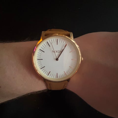 Fin dameklokke. Brukt 2-3 ganger, fremstår som helt ny. Ny pris 499,-. Kjøpt i feb 25 på Gullfunn. Kvittering følger med. Kjøper betaler frakt hvis den skal sendes.