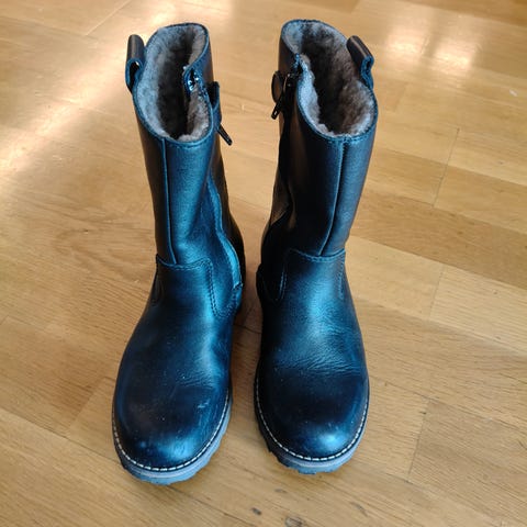 Skinnsko/støvletter fra Bisgaard, brukt «til pent» (dvs ikke bhg) av to jenter i to sesonger. Brukt, men mye bruk igjen. Jeg klarer ikke helt å se hvor størrelsen står, men det skal ca være 29-30.