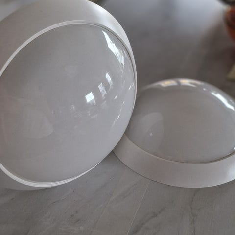 4 stk taklamper. Ubrukte. Hvit plast (en gulnet/misfarget). 200pr stk (100 for den gulnede). Evt 500 for alle.