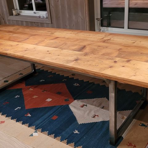 Selger er stor rustikt langbord i hvitkalket eik pga flytting.
