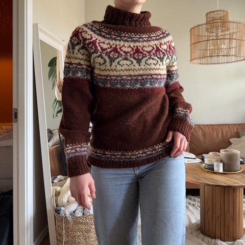 Deilig og varm Alasuq Polar ullgenser etter oppskrift fra Linka Neumann. Strikket i Fivel fra Rauma garn.