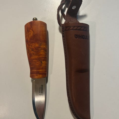 Brukt noen få ganger. Asker sitt kommunelogo etset inn i knivblad.
