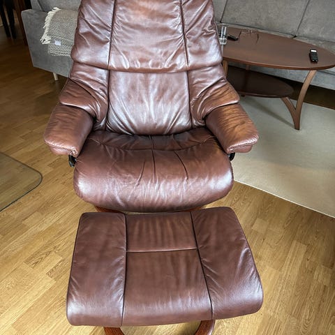 Selger 2 stk sort Ekornes stressless med pall i ekte hud.