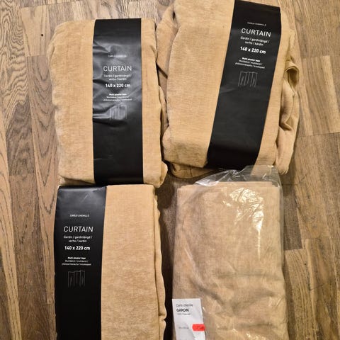 Da jeg skulle ha tak skinne tenkte jeg ikke på at ikke gardinene kunne brukes til den typen jeg har kjøpt. Så må dessverre selge favoritt gardinene mine. Det er pris 200 kr per stk av velur gardinene og 50 kroner stk du brukte gjennomsnittlig hvite. Jotex hvite gjennomsnitt er lengde 250 med 2 pakker med 4 gardiner til sammen. 200 per pk.