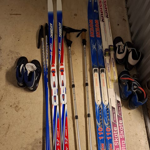 Den ski og skisko vi har brukt bare 3 ganger. Sko storelse er 40, og 42.