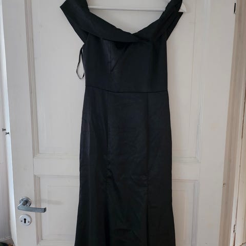 Off shoulder kjole med tettsittende kropp og nydelig shiny stoff. Brukt 3 ganger og pent brukt!