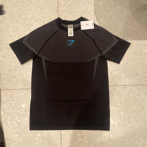 Gymshark Fitness T-skjorte i størrelse L for menn. T-skjorten er svart og laget for treningsbruk.