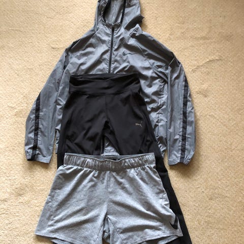 Nike dry fit jakke til trening, str 146 / 156, blå/ grå, lommer foran.