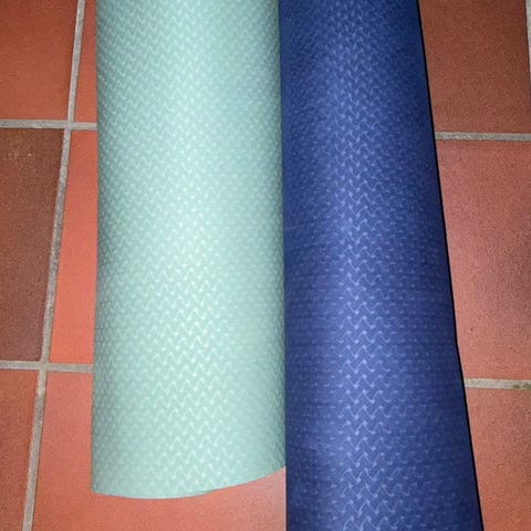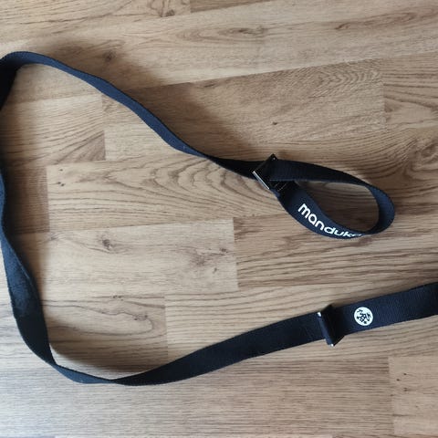 Selger fine og praktiske yoga stropper 😍 Helt nye og uåpnede. Forsterket med mykt "skinn" der du skal bære den over skulderen. Passer til alle yogamatter.