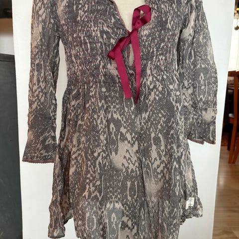 Meget pent brukt kjole/ tunika fra Odd Molly selges. Str 3 som tilsvarer L/XL. God på størrelsen. 80% bomull 20% ull. Stoffet er tøyelig. I tillegg er det tøyelig vaffelsøm på overkroppen som gir god og behagelig passform. Fargen er svart. Knapp nederst på ermene. Se gjerne mine andre annonser, jeg gir kvantumsrabatt og kan samsende:)