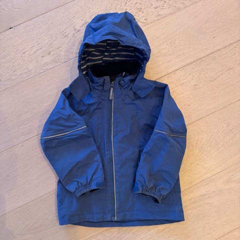 Pent brukt jakke fra Mini A Ture i str 116. Vi har sydd inn strikk nederst for en bedre passform (kan sprettes opp og tas ut). Litt skitten ytterst på ermene, men ellers i veldig fin stand.