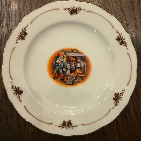 Nissen på koppen og kakeasjetten er lik og hører sammen.