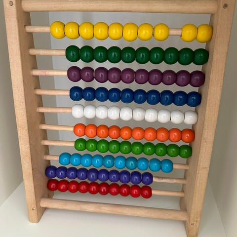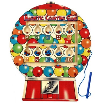 magnetisk aktivitetsbrett i tre. Barnet sorterer farger med magnetpenn, noe som trener håndkontroll, konsentrasjon og tidlig fargekunnskap. Kulene ligger trygt bak plast.