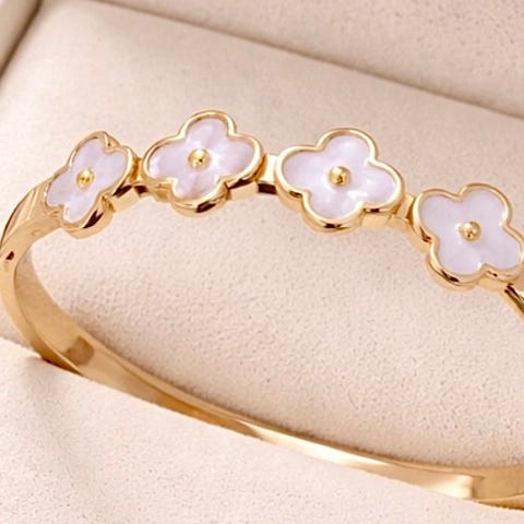 18K gullforgylt kløverarmbånd i perlemor fra Aiyanna Jewlerys. Kjøpt hos Kouture. Selges da jeg kun har brukt det en gang. Fremstår som helt nytt.