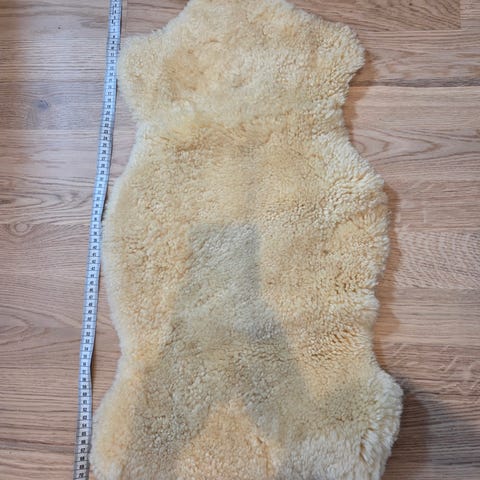 Brukt lammeskinn med hull til seler selges. Har blitt brukt i barnevogn.