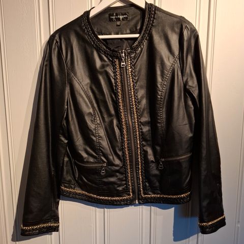 Kort jakke fra Kapphal. Hvit m blå striper. Tøffe detaljer. Brukt den noen timer. Tøff til jeans og til kjole. Er 42, men vil si at den er mere 38/40.