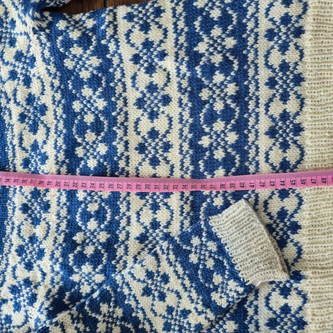 Har krympet etter tørk og har blitt veldig fin genser til et barn.
