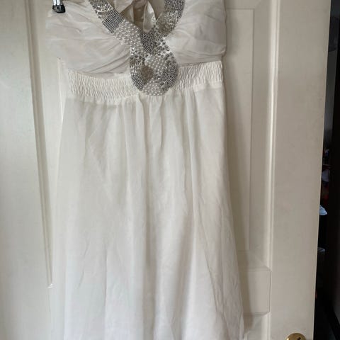 Pent brukt kort festkjole fra Occupied. Str. XL. Liten i størrelse. Mer M/L. To lag med stoff. Blondestoff ytterst.