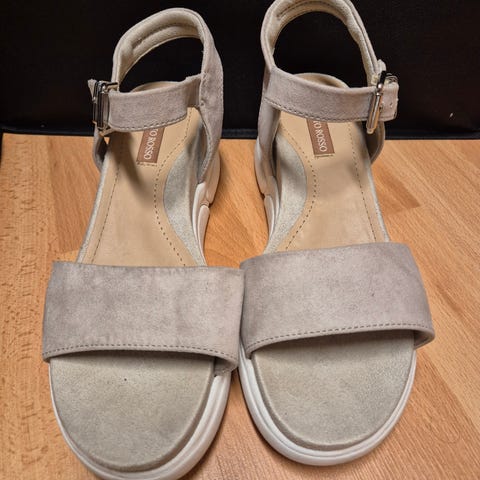 Skoene har brede stropper over ankelen og en justerbar stropp du fester med en enkel fin sølvspenne rundt ankelen. Den høye sålekanten sammen med yttersålen gir en moderne følelse.