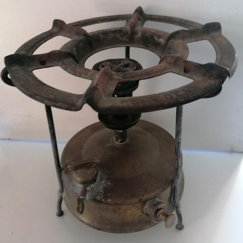 Vedkomfyren er ca 100 år gammel! Den er tatt fra hverandre, renset (rust fjernet) og montert sammen igjen, til slutt er den behandlet med ovnssverte og polert! Den er vel så strøken som den kan være etter hundre år.. Alle deler er der, ingen sprekker eller reparasjoner. Den er helt klar for montering. Det er ekstra plater i brennkammer slik at man ikke trenger steinsetting. Det er en liten ovn som kan monteres i grue, lekestue, på hytta eller i en båt. Det har aldri vært bein på denne og kan monteres rett på mur/ murstein. Lengde er 55,5 cm, høyde er 26 cm, dybde 28,5 cm. Total dybde med ovnsrør er 36 cm. Veier nok omkring 50 kg. Selges kun 4950,- som er billig for en nyrestaurert ovn! Flott som beredskaps ovn!