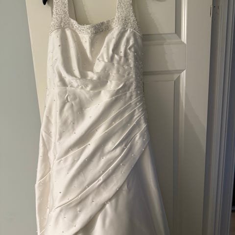 Agape brudekjole i ivory farge, størrelse 38. Kjolen har en stroppeløs design med hjerteformet utringning og en voluminøs skjørtedel som gir en klassisk brudestil. Materialet er lett og gir god bevegelsesfrihet, egnet for bryllupsanledninger. Kun brukt 1 gang ferdig renset. Kan passe flere kom gjerne og prøv kjolen. Slør kan følges med vis ønskelig
