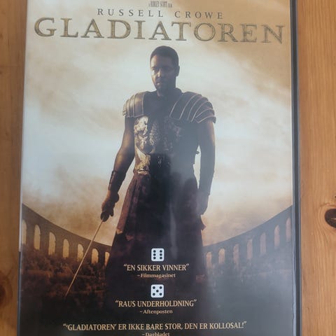 Gladiatoren DVD med Russell Crowe i hovedrollen. Actionfilm med engelsk lydspor og teksting tilgjengelig på flere språk. Format 16:9 anamorphic widescreen 2.35:1. Inkluderer spesialfunksjoner som kommentarspor, rapport om produksjonen og arkivmateriale.