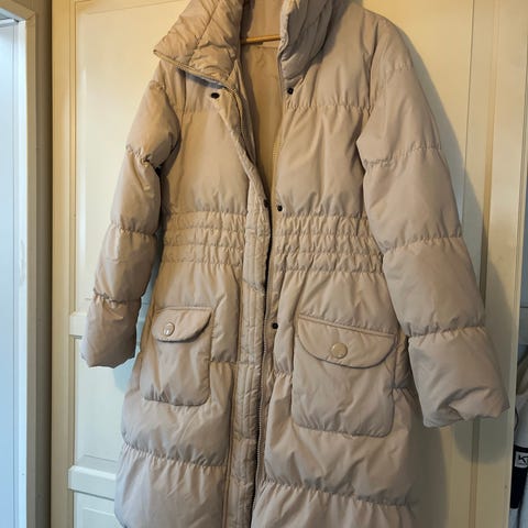Dunjakke kun brukt 4 ganger , Merke HAUST str 34men passer fint str S , selges rimelig da det mangler knapp helt øverst , ikke synlig ved bruk se bilder for detaljert
