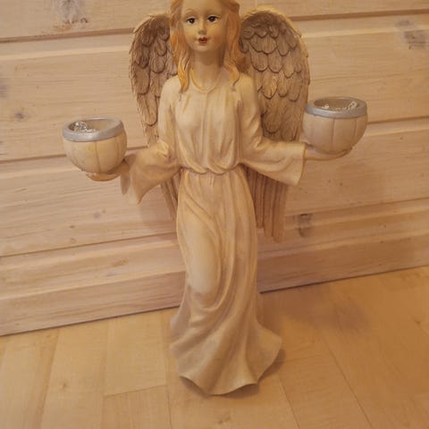 En nydelig engel som lysestake. Ser ubrukt ut.