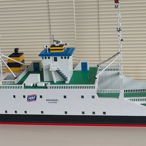 Selger skala modell av m/s Sleipner flaggruten