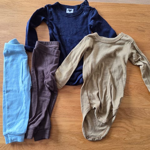 Superfint sett i god og varm merinoull i str. 74. Perfekt å bruke i barnehagen og mot kaldere dager.