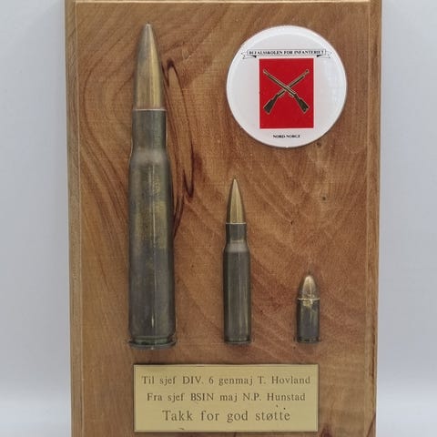 Et tidsvitne fra en viktig periode i moderne norsk militærhistorie – solid utført i metall og tre, og meget dekorativ på vegg eller hylle.