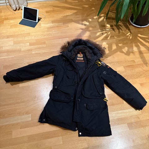 Denne jakken er kjøpt fra Sverige for 9,999 kr . Den er pent brukt og skal selge den for 5000kr. Kvittering følger med , men den er litt slettet fordi den var i lomme heletiden. Jakke. Ble aldri vasket.