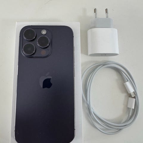 Grunnet overgang til nyere modell selger jeg min iPhone 14 Pro. Den er uten merker/skader, har aldri vært brukt uten cover eller skjermbeskytter. Batterikapasiteten er på 80%