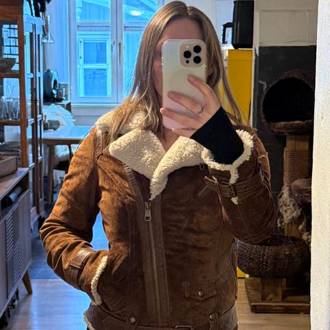 Råfin marineblå semsket skinn jakke fra 2025Jofama Rookie by Kristine Ullebø i størrelse 40. Den er prøvd på, men aldri brukt.