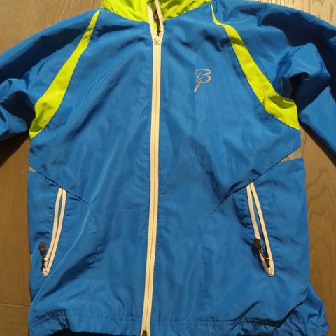 Pent brukt blå Nike tynn overtrekksjakke/treningsjakke, str. M (137-147 cm, 10-12 år) med avtagbar hette.